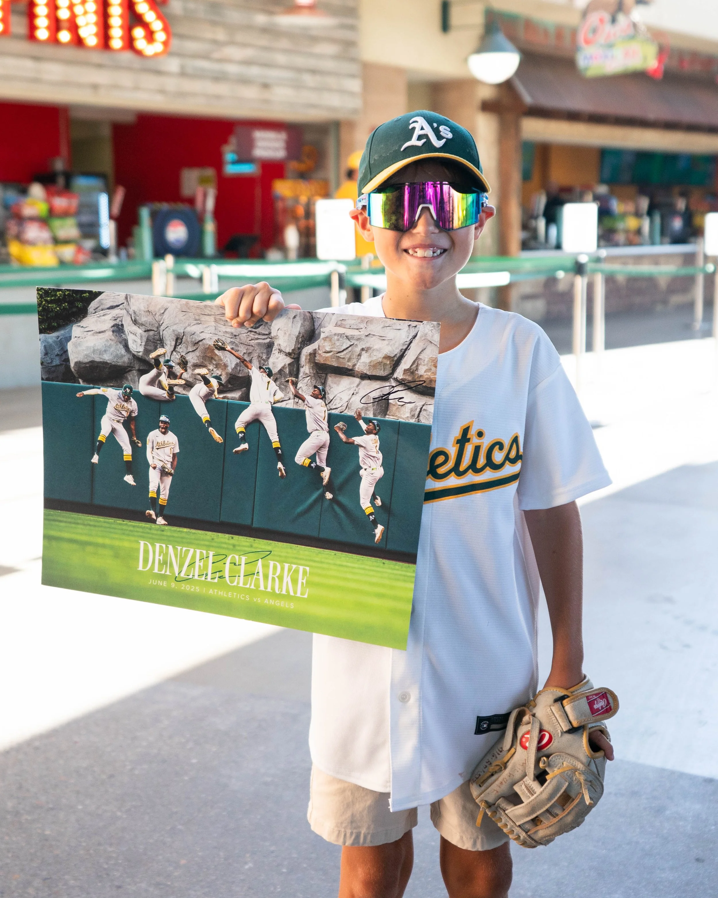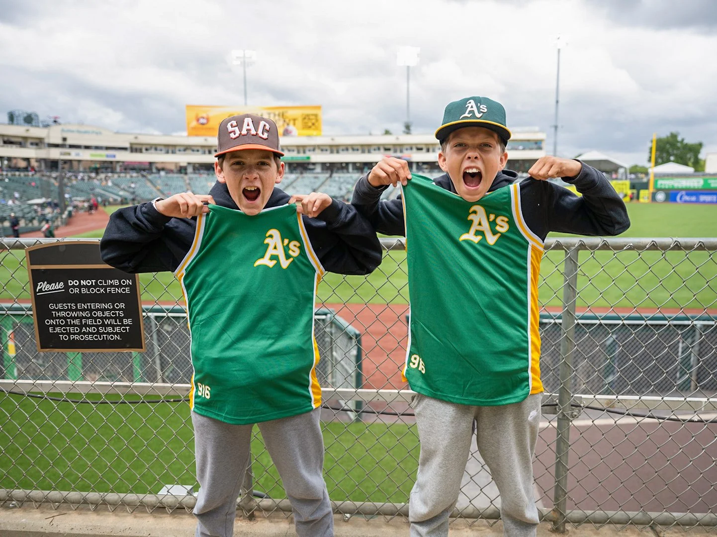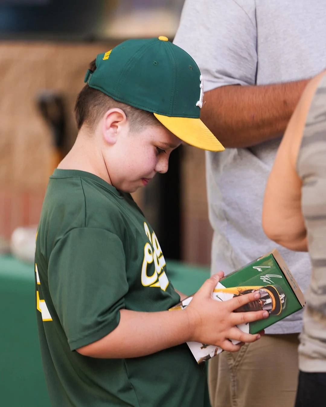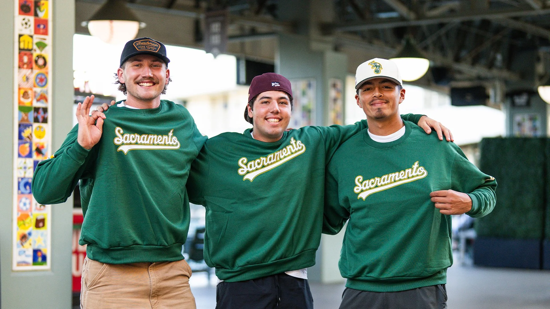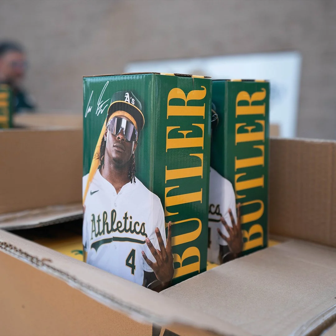 The Athletics produced a full calendar of stadium giveaways across seasons in Oakland and Sacramento, requiring a consistent range of fan-facing designs throughout the season. I designed a full suite of giveaway items — including Sacramento crewnecks, A's crossover basketball jerseys, and packaging — each developed with the team's visual identity and fan experience in mind, and distributed to thousands of fans on gameday.